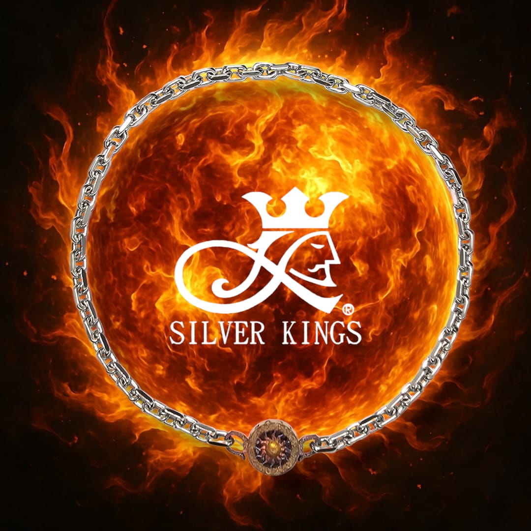 「Silverkings 太陽頸鏈——純銀 925 與精鋼鏈交織成火太陽頸鏈,啟發你內心如太陽的光芒,攜光而行。