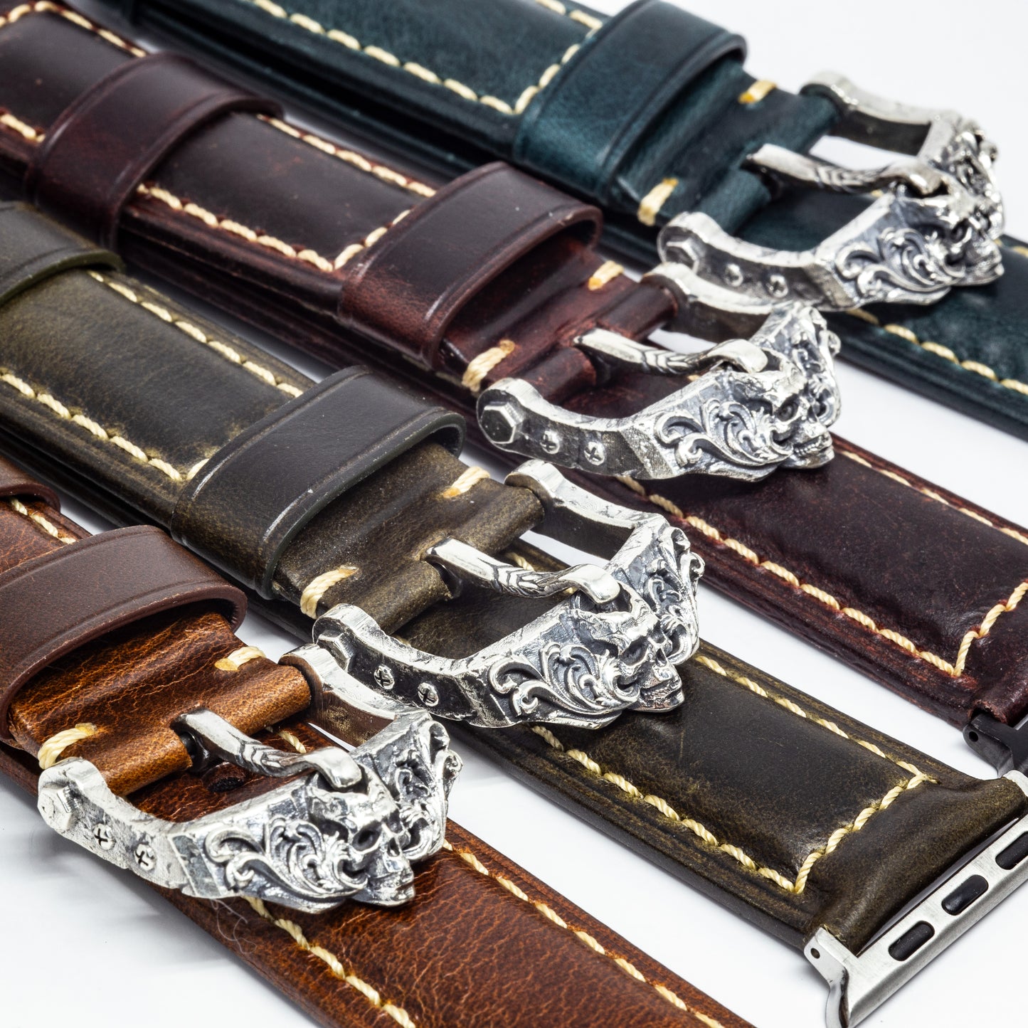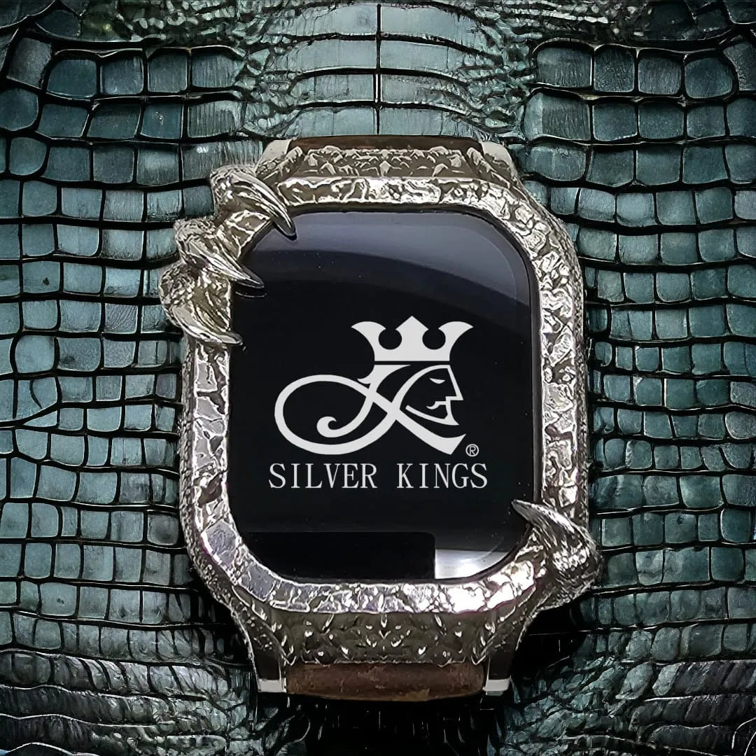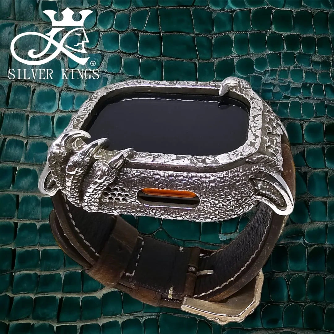 Apple Watch Case and Leather Strap & Buckle for Ultra Silver 925