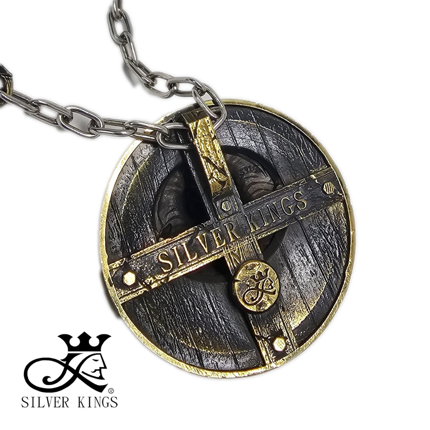 925 純銀黑獅盾吊墜配黃銅皇冠