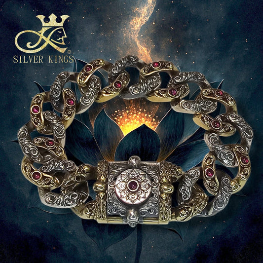 Silver & Brass Black Lotus Bracelet
