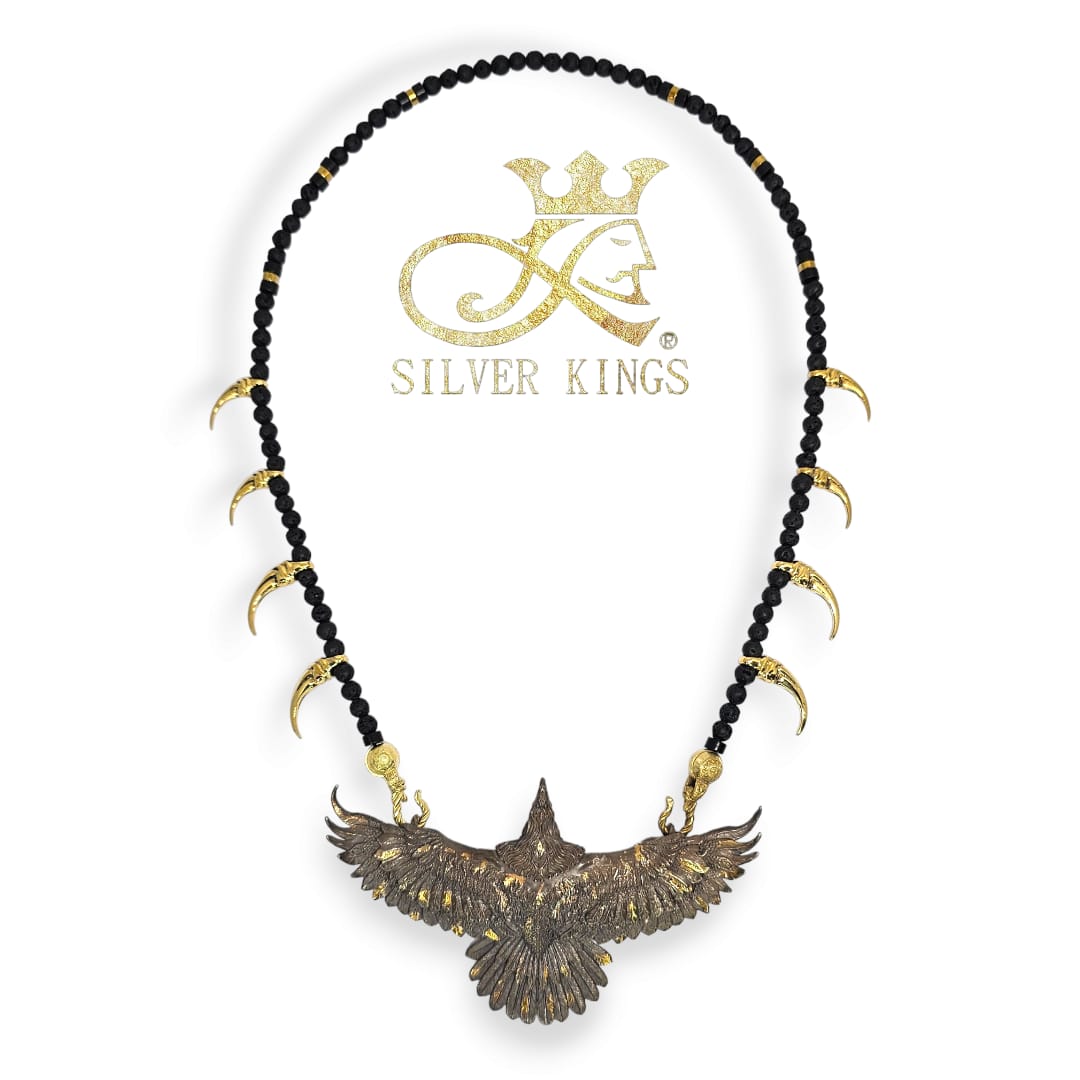 18k & Silver 925 Crow with Lava Stones necklace & brass claws