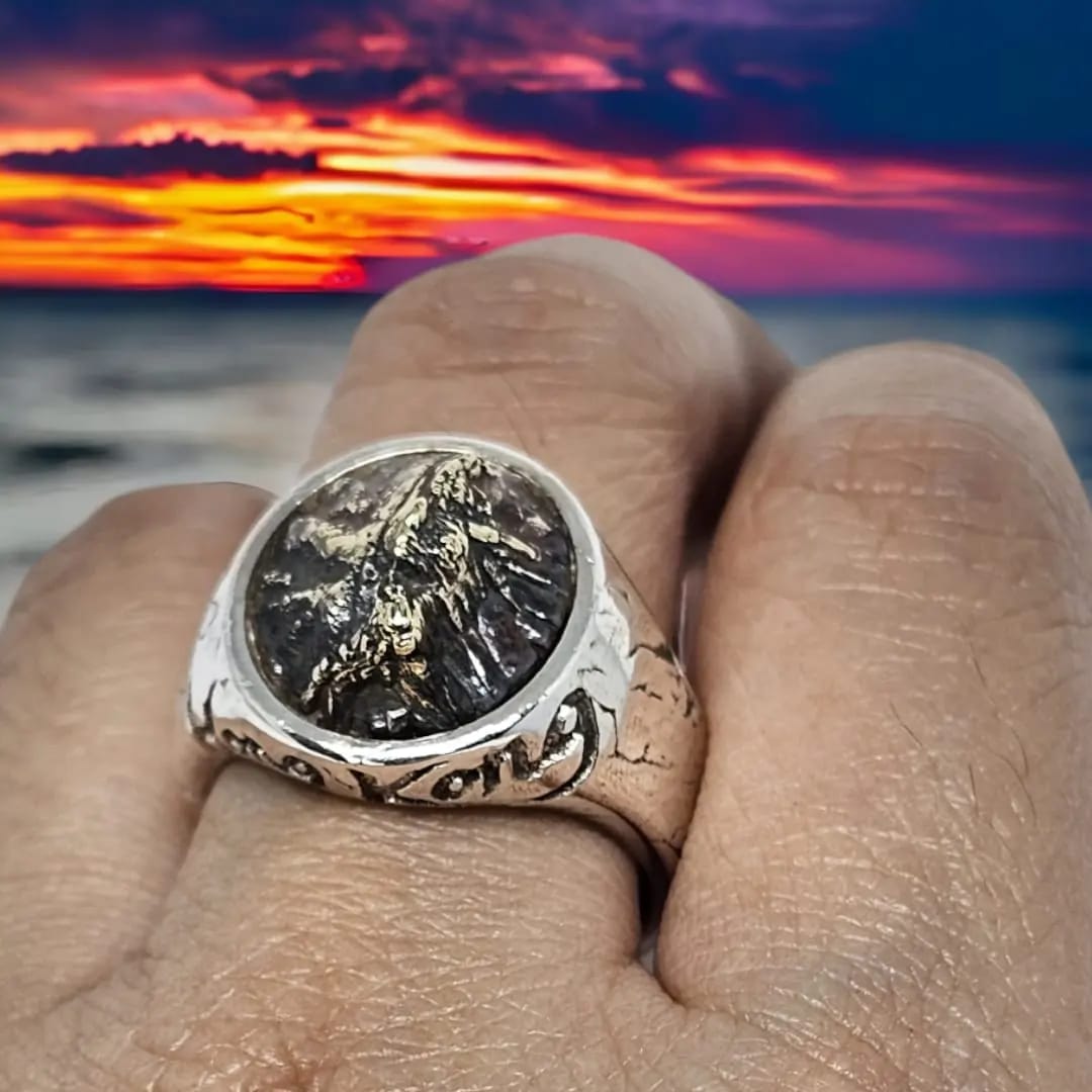 Sterling Silver 925 Ring / Brass Lion Rock Mountain