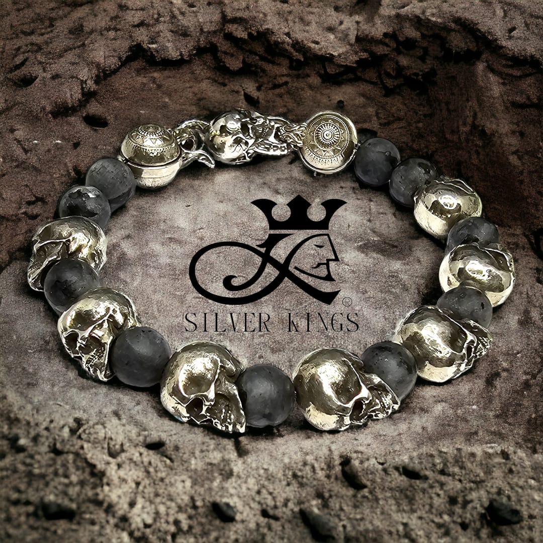 Silver 925 Skull Stone Beads Bracelet