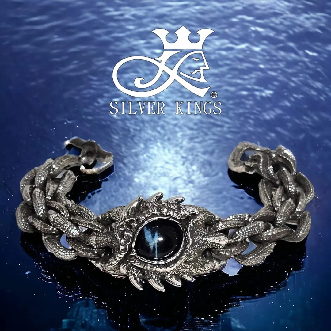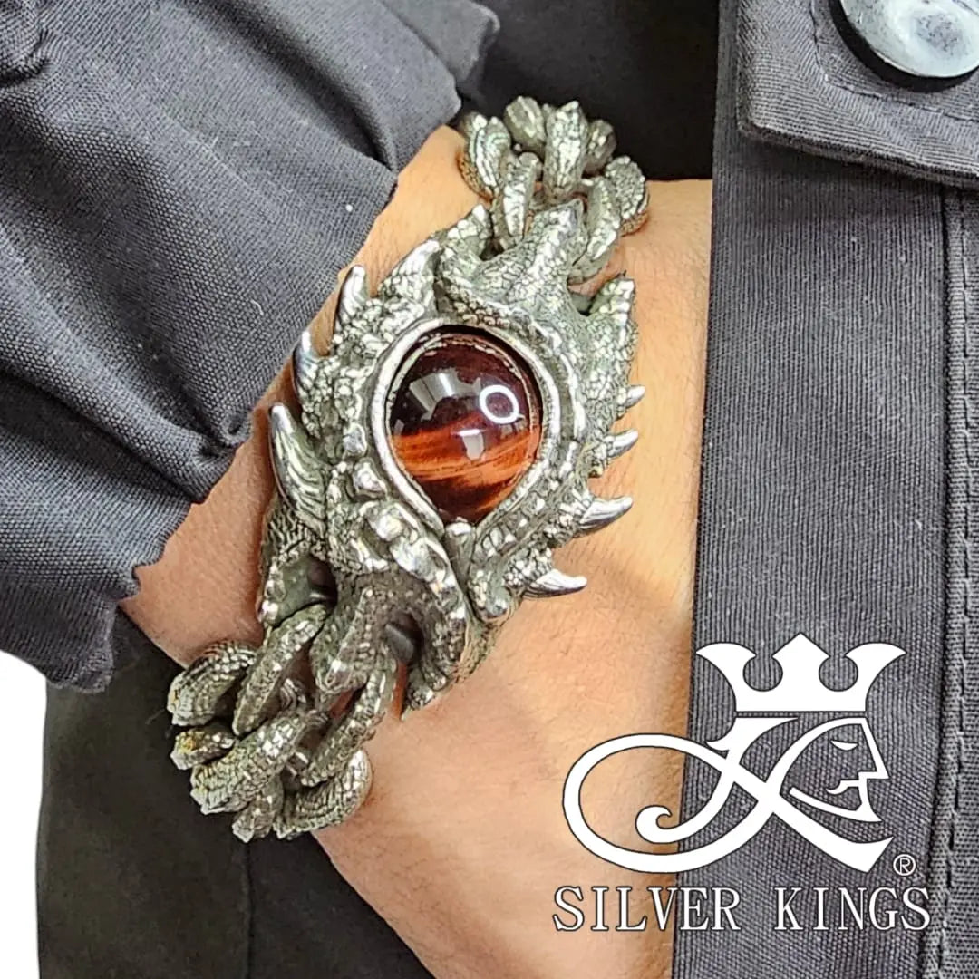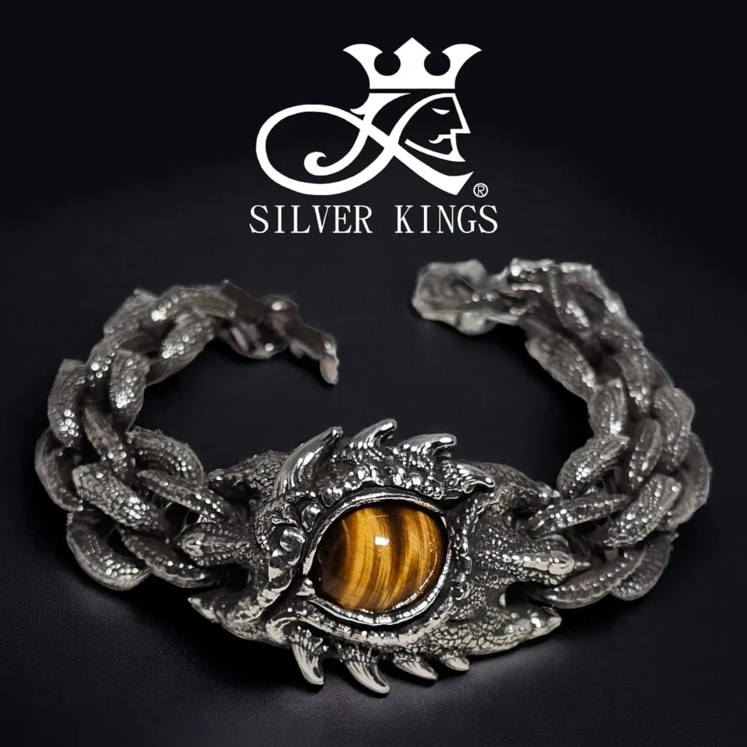 Silver 925 Dragon tennis Bracelet 'Tiger Eye 16mm'