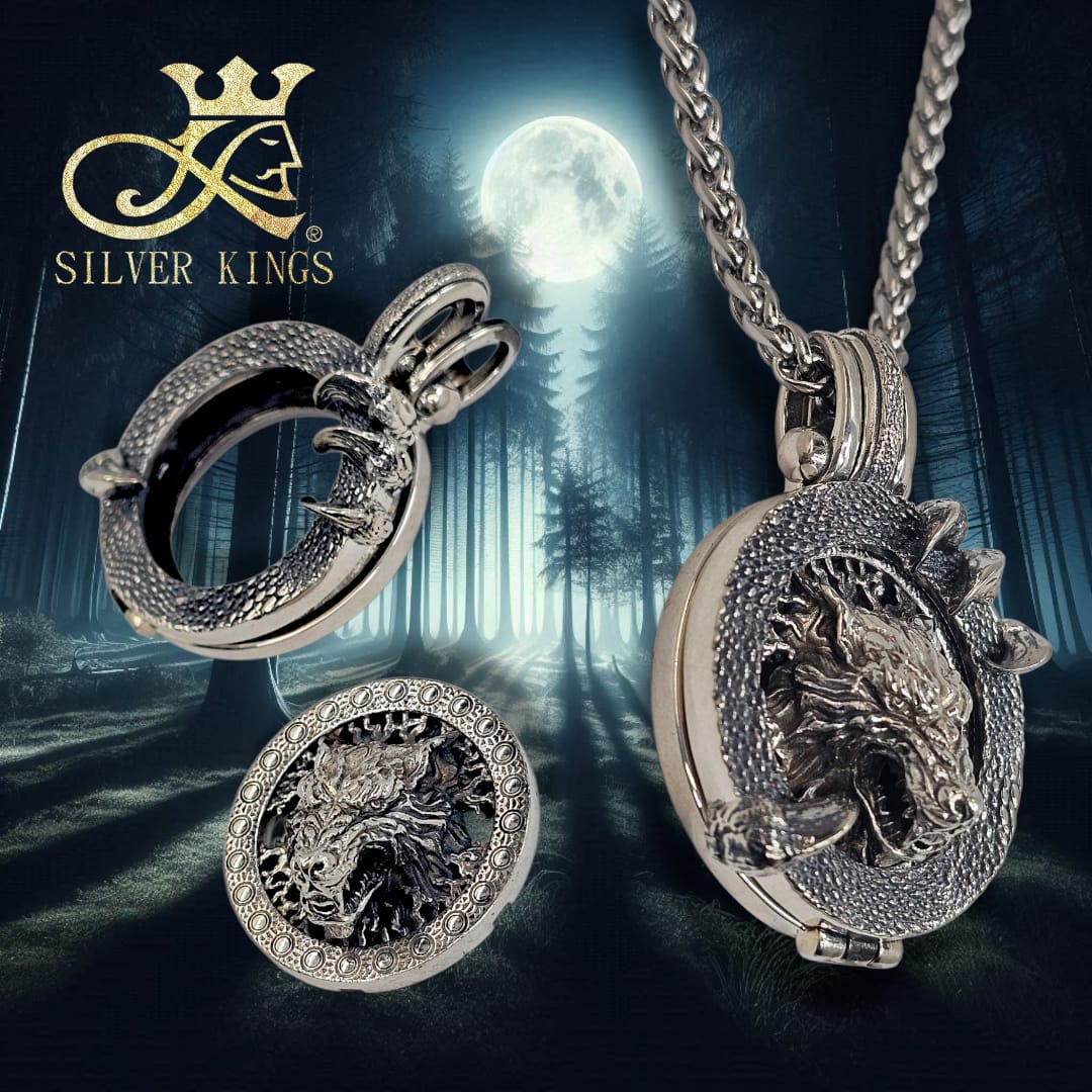 This pendant features the head of a direwolf at its center, intricately carved with detailed fur and sharp eyes, showcasing authority and wildness. Merging with the Infinity series, it blends wildness and freedom, becoming a unique piece of art!