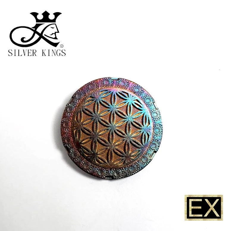 One side "Flower of Life", other side "Binary Opposition" pattern