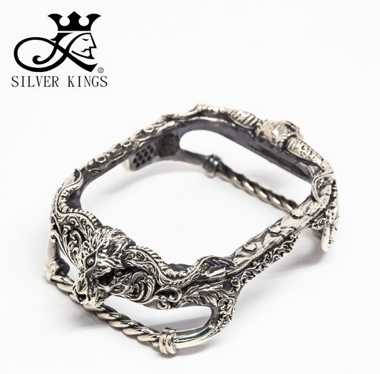 Apple Watch Case and Leather Strap & Buckle for Ultra Silver 925