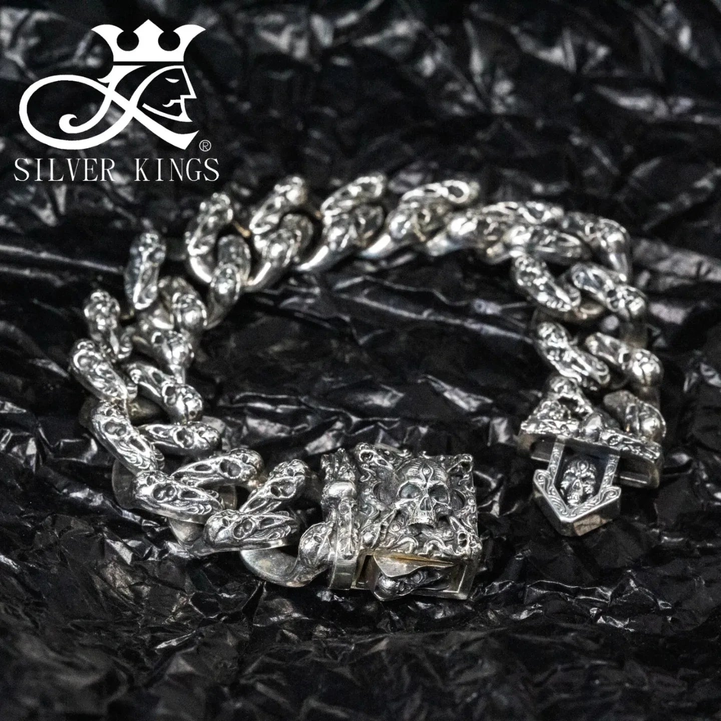 Silver 925 Crow & Skull tennis Bracelet 'W1.7cm'