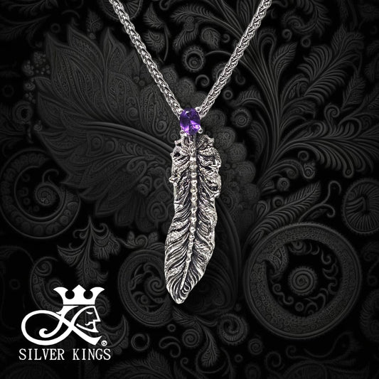 Crow's Feather Pendant set with Chain [Natural Amethyst]